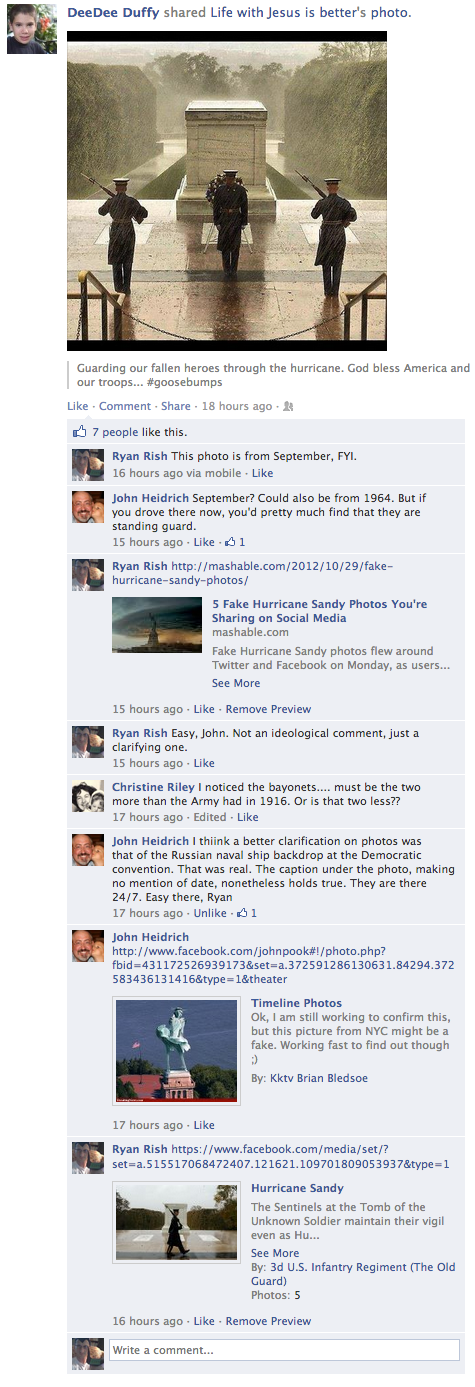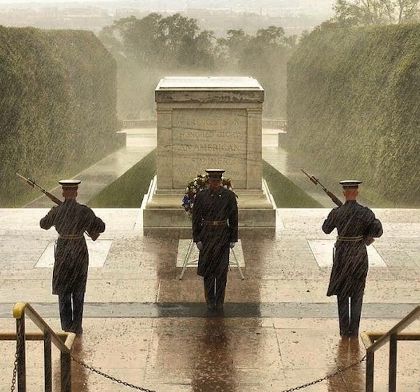 So, does it matter when the photo was taken? It is the Old Guard, and it is the Tomb of the Unknown Solider. Does it matter if the weather in the photo is not Hurricane Sandy?